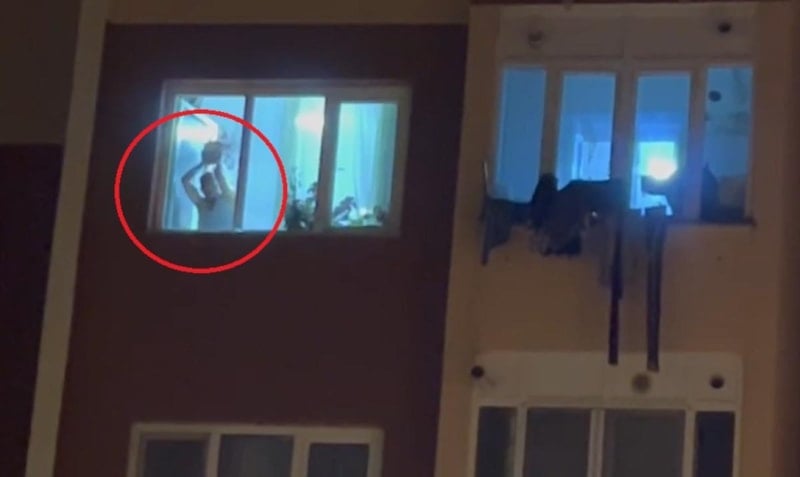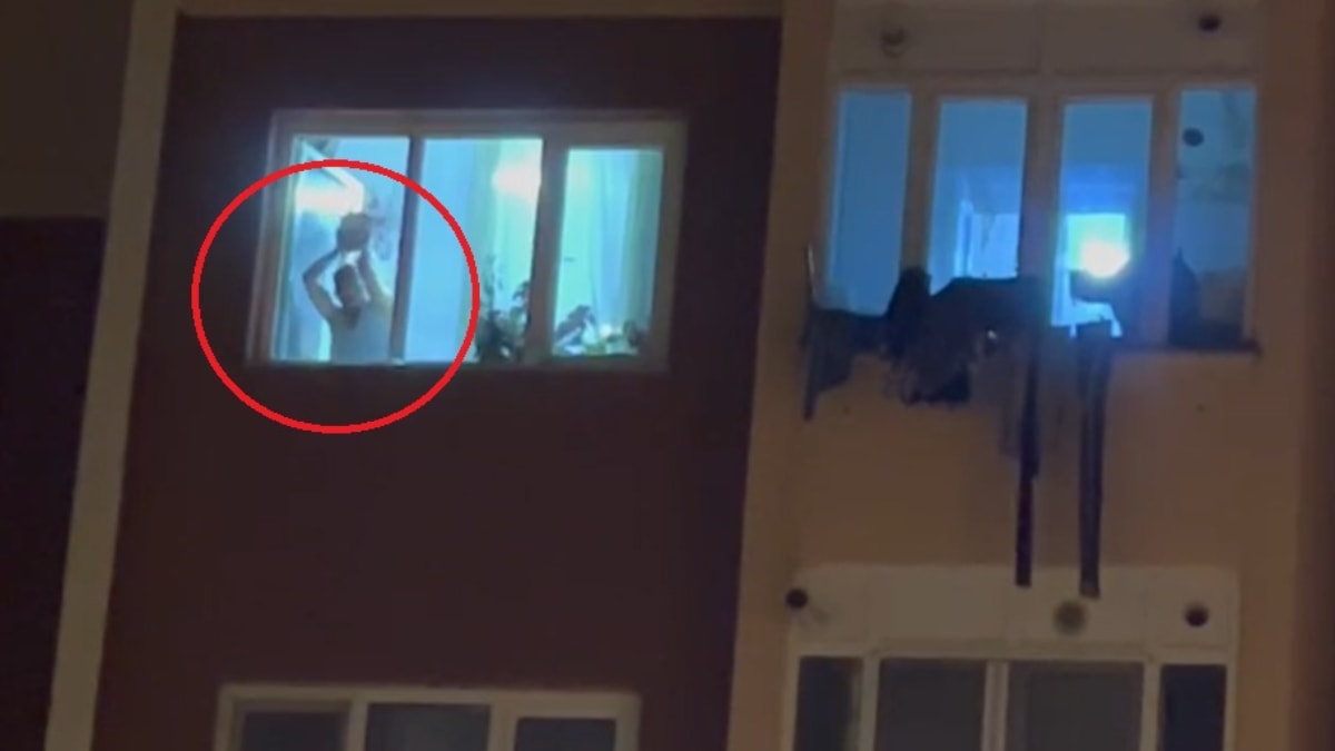 Ancak polislere kapıyı açmayan şüpheli, camdan çevresindeki hakaretler ve küfürler yağdırıp, aşağıda toplanan vatandaşların üzerine saksılar fırlatmaya başladı.