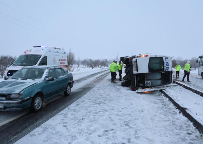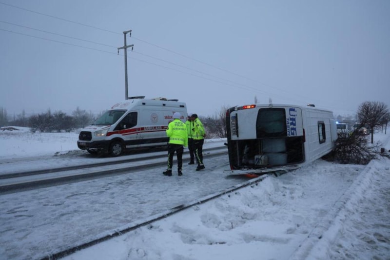 Nevşehir’de buzlanma nedeniyle kontrolden çıkan yolcu minibüsün devrildiği kazada 6 kişi yaralandı.