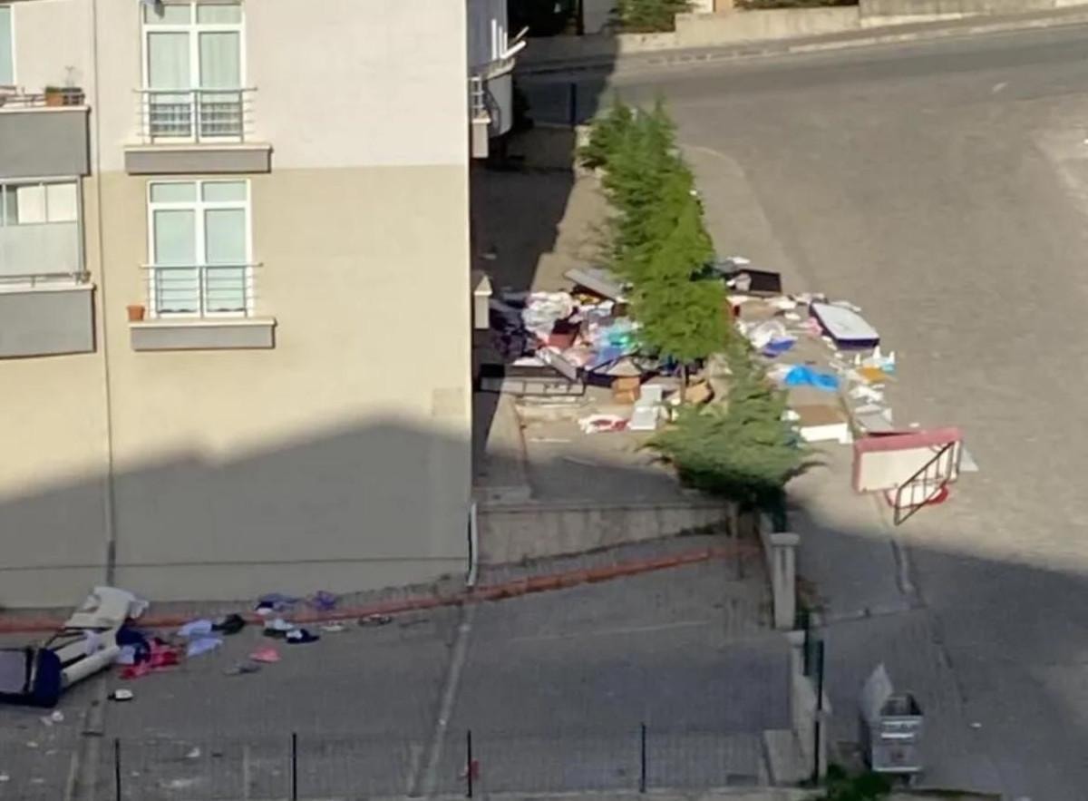 Aşağıya atılan eşyaların ise sabah saatlerinde belediye ekipleri tarafından toplandığı öğrenildi