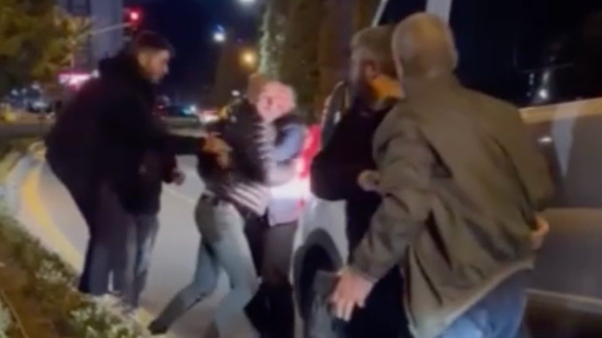 Kavga anı, çevredekiler tarafından cep telefonuyla görüntülendi.