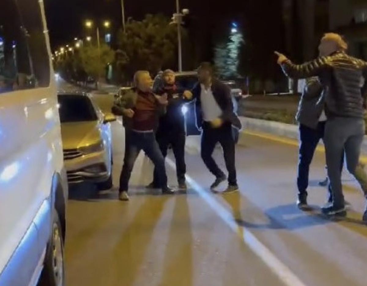 Sürücülerin kavgaya tutuşmasıyla yumruklar havada uçuşurken, kavgayı çevredeki vatandaşlar ayırdı.