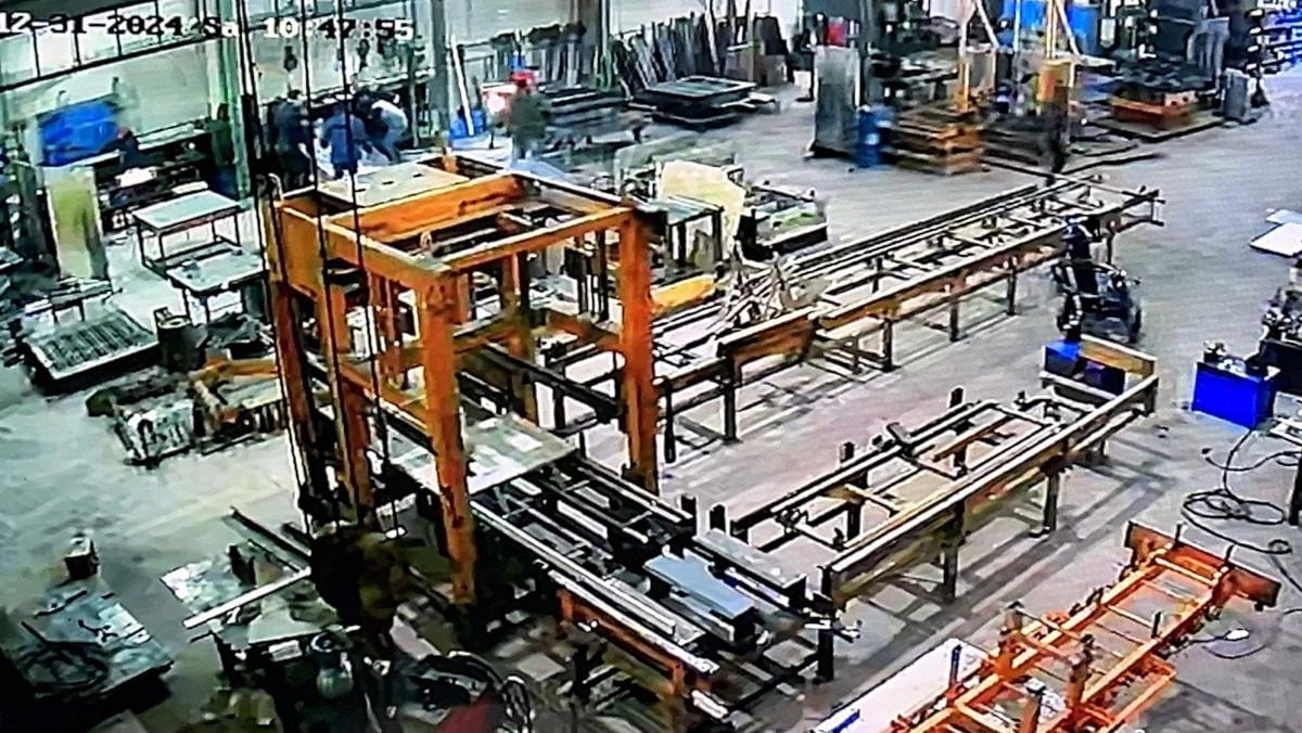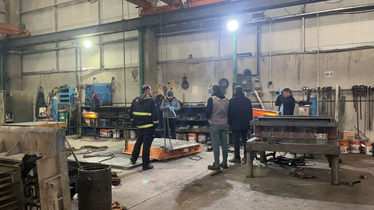Kent merkezine bağlı Sümer Mahallesi üzerinde briket blok makinaları ve ekipmanları yapan bir iş yerinde, briket blok makineleri yapımında kullanılan kalıbı taşıyan vincin zinciri bir anda koptu.