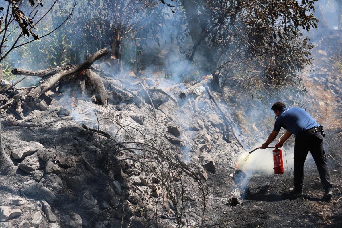 Bu sırada çevredeki vatandaşlar da küreklerle yangına müdahale ederken, TOMA da sevk edildi.