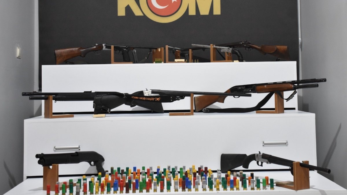 Gözaltına alınan şahısların ikametleri, iş yerleri ve araçlarında yapılan aramalarda; 8 adet ruhsatsız tüfek, 2 adet ruhsatsız tabanca, 2 adet şarjör, 146 adet tüfek fişeği ve 55 adet tabanca fişeği ele geçirildi.