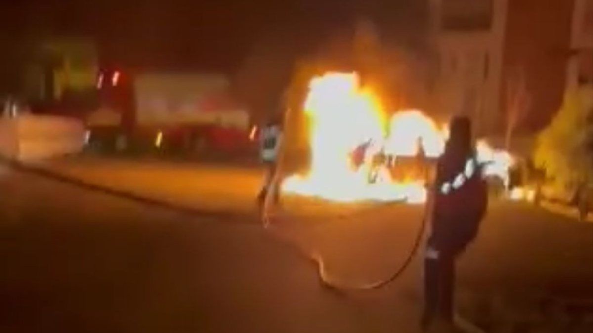 Otomobilin yandığını görenler itfaiye ve polis ekiplerine haber verdi. Olay yerine itfaiye ve polis ekipleri sevk edildi.