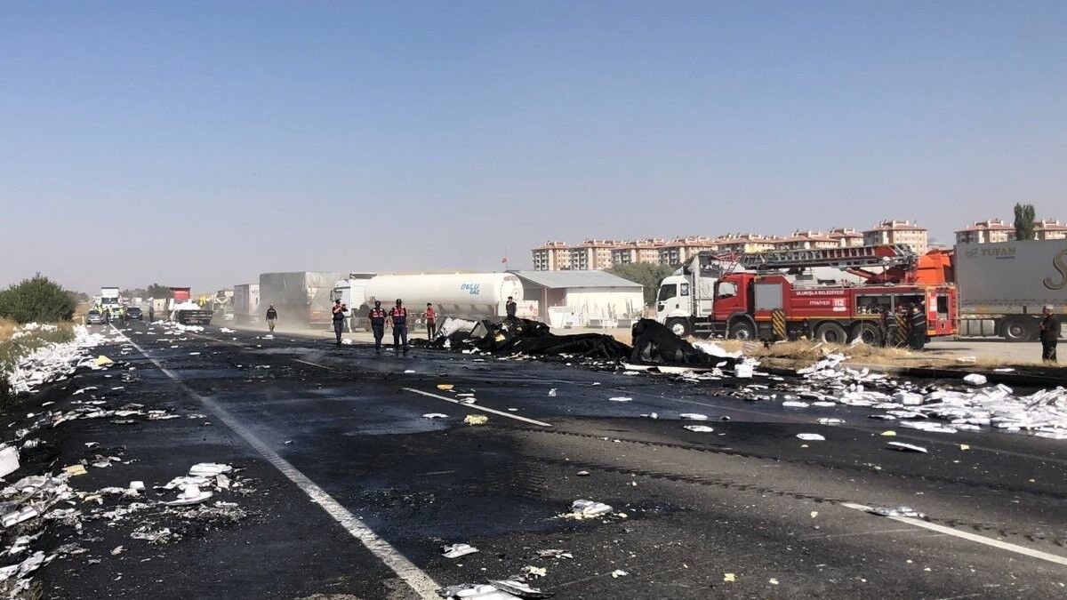 Adana-Ankara E90 otoyolunda ilerleyen köpük tabak yüklü tır dehşet saçtı.