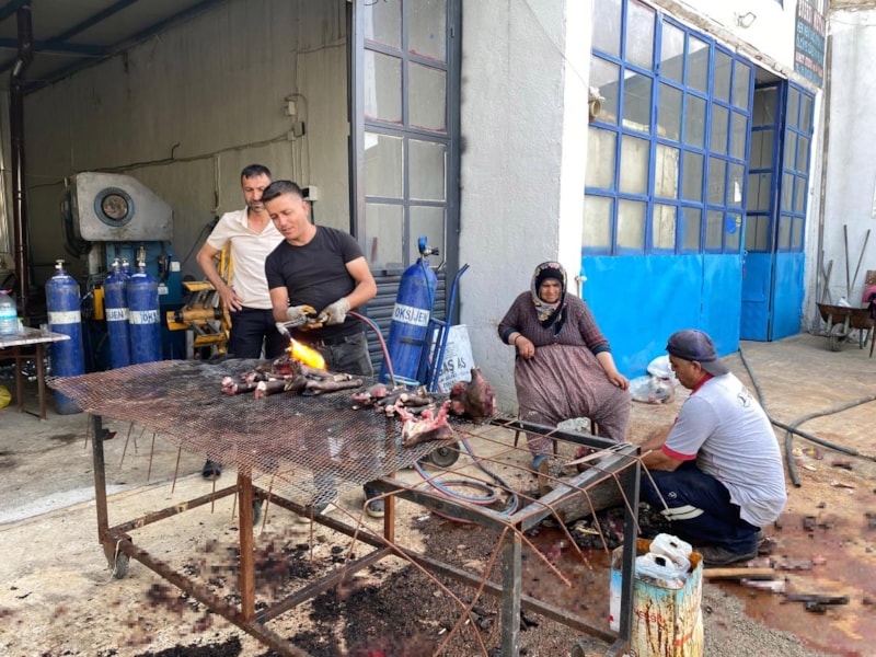 Niğde'de Kurban Bayramı süresince sanayideki metal ustaları, kelle ütme mesaisi yapıyor.