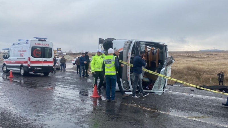 Tur midibüsünün devrildiği kazada, 1 kişi öldü, 27 kişi yaralandı. Yaralılar ambulansla hastaneye kaldırıldı.