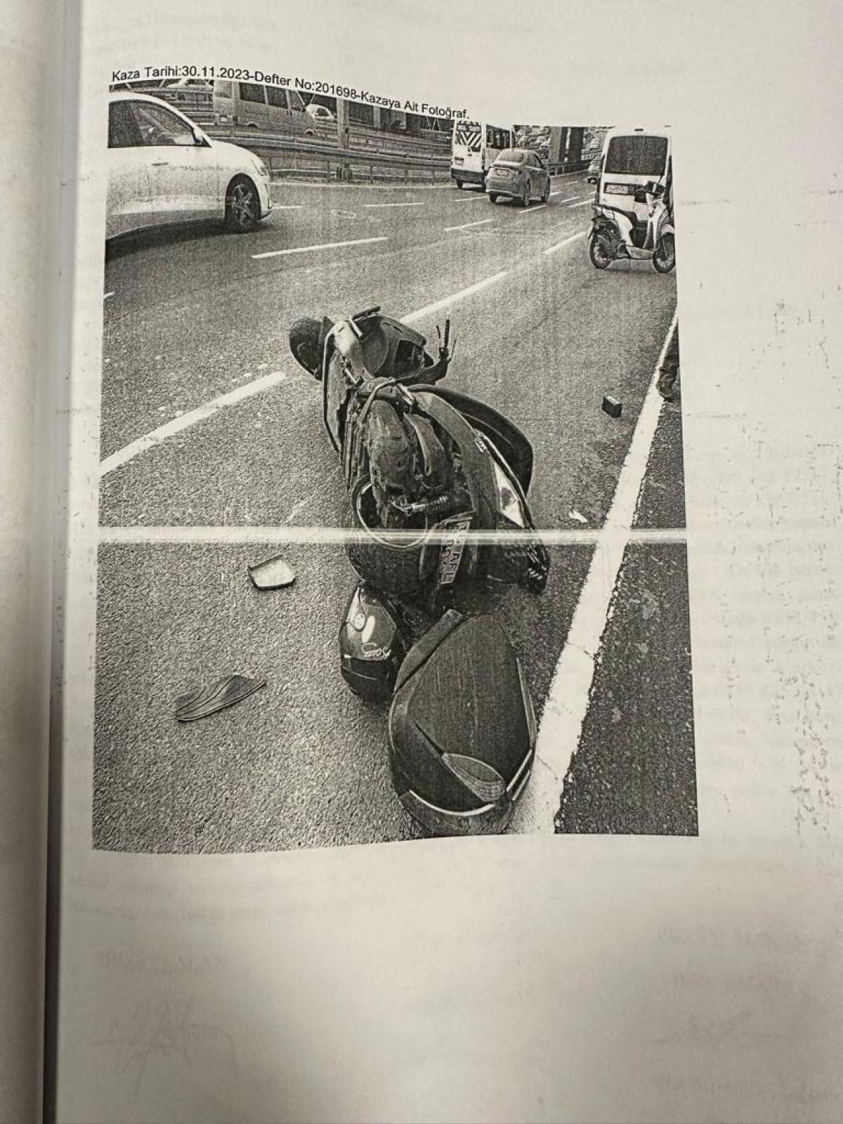 Ondan sonra ağabeyim geldi, beni aldı götürdüler. Kapıda 1000 kişilik bir grup vardı, motorculardan yer yoktu zaten. İçeri girdiğimde eşimin ayaklarını görünce zaten ben oraya bir yığılmışım. Adam vuruyor. Kaskı fırlatıyor. Tekrar üstünden bir daha eziyor geçiyor. Ve gidiyor, fren izi yok hiçbir şekilde. Gidiyor tekrar olay yerine geliyor. 250 metre sonra geliyor. Orada kime telefon açıyorsa açıyor. Bu olay da kapanıyor.