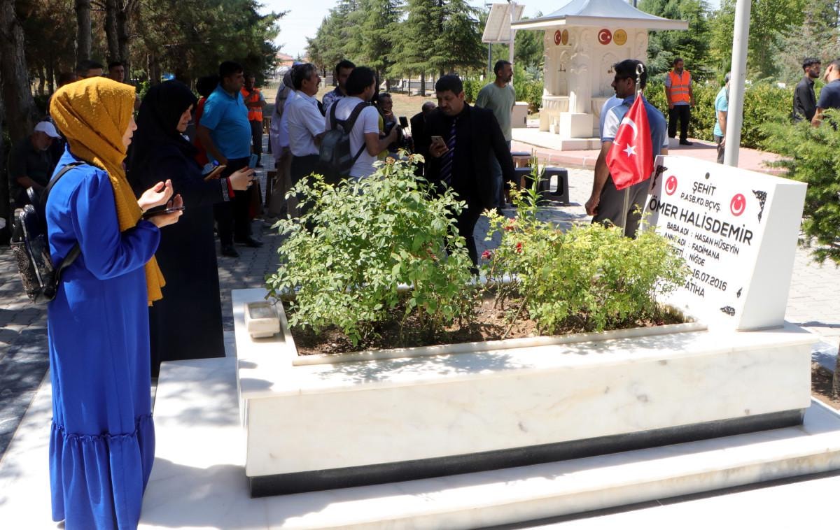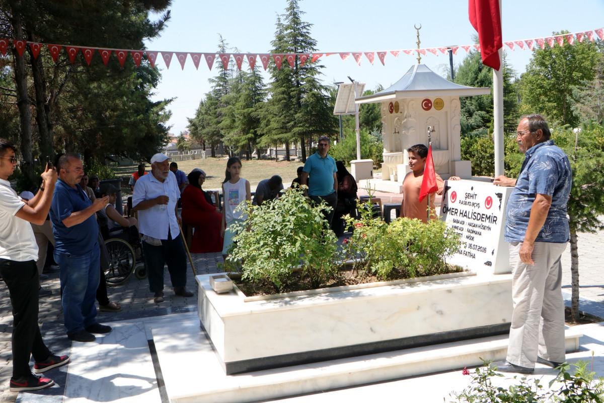 Torunuyla Aksaray’da Ömer Halisdemir’in kabrini ziyaret etmek için gelen Yeter Görür (57) ise gözyaşlarına hakim olamayarak, “Evladımı görmeye geldim. Onun için dua ettim. O karanlık gecede hepimiz üzüntüyle sabahlara kadar bekledik. Şehitlerimizin hepsinin mekanı cennet olsun. Burada duygulanmamak mümkün değil” diye konuştu.