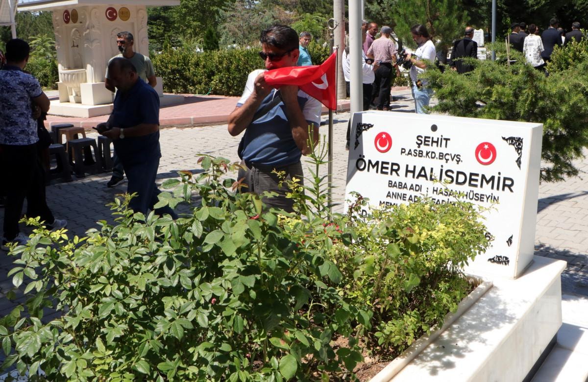 Türkiye'nin dört bir yanından gelen ziyaretçiler, Özel Kuvvetler Komutanlığı'nda general Semih Terzi'yi öldürerek darbe girişiminin seyrini değiştiren Halisdemir'in mezarı başında Kur’an-ı Kerim okuyup, dua etti.