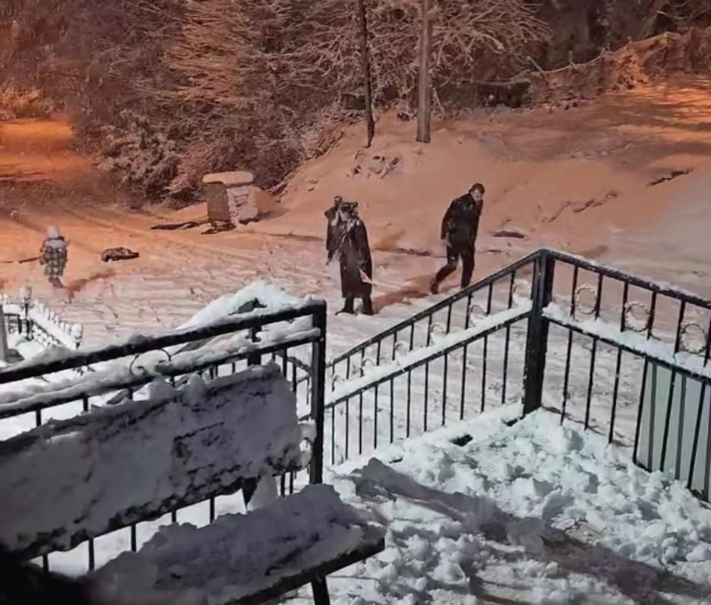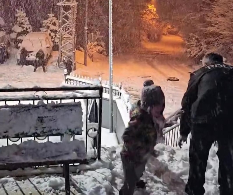 Ekipler, kar yağışının keyfini çocuklarla birlikte çıkararak onlarla kar topu oynadı.