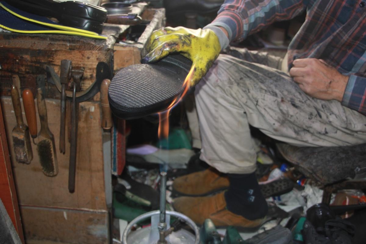 Aydın, imalatın son aşamasında ayakkabıları ateşle buluşturduklarını belirterek bu yöntemin, gerçek deriyle sahte deriyi ayıran bir işlem olduğunu söylüyor.