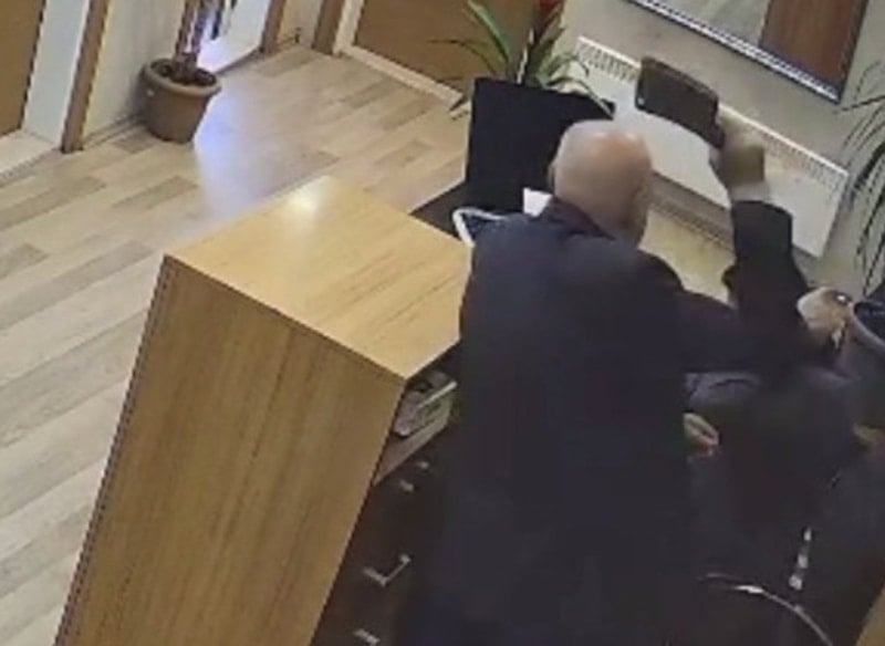 Görüntülerde, Yusuf Doğan isimli şahsın sekreterlik odasına geldiği, bir süre sonra ceketinin cebinden çıkardığı satırın keskin kısmıyla Demirkale'nin başına 2 kez vurduğu anlar yer alıyor.