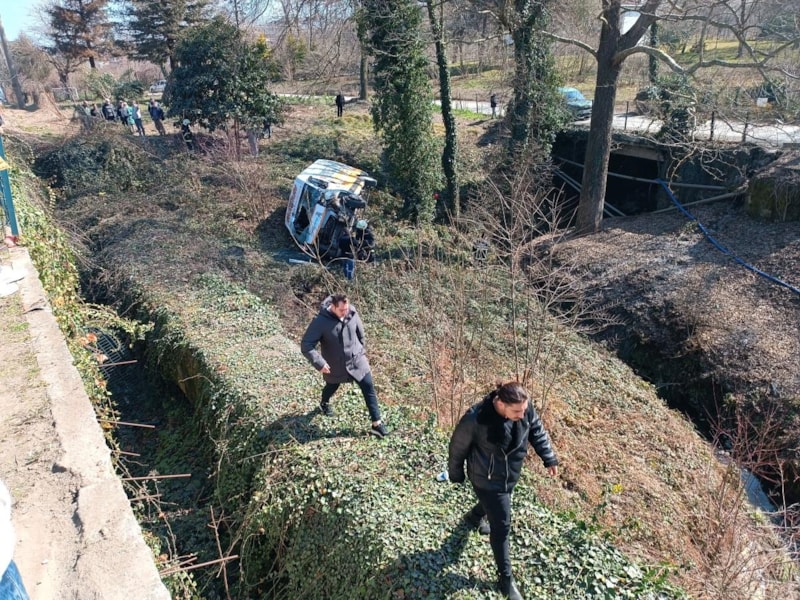 Kontrolden çıkan minibüs kaldırımdan aşağıya uçtu.