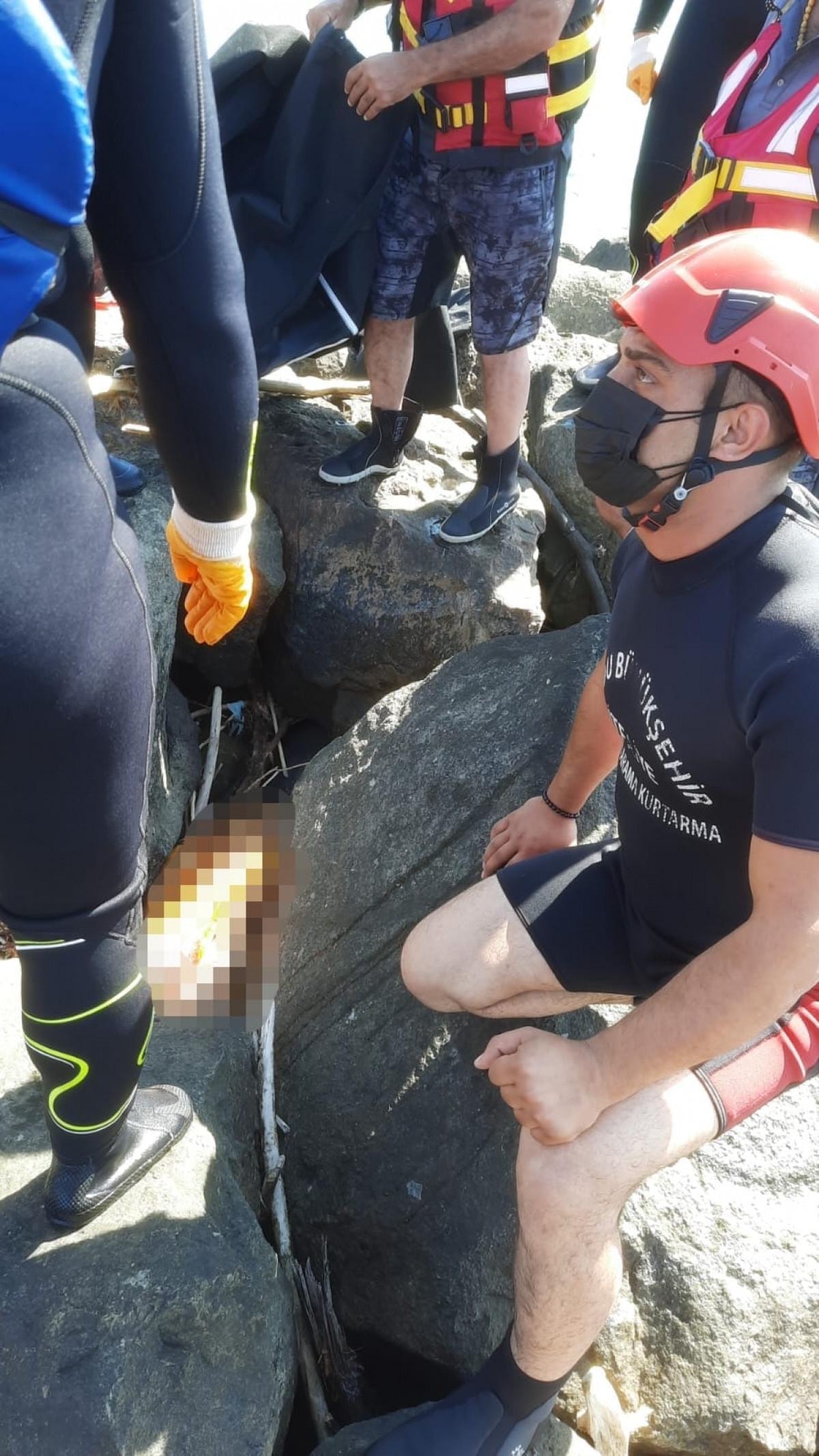 Bölgede devriye atan jandarma ekipleri, denizde ‘T’ olarak tabir edilen dalga kıranların arasında hareketsiz yatan bir kişi olduğunu fark etti.