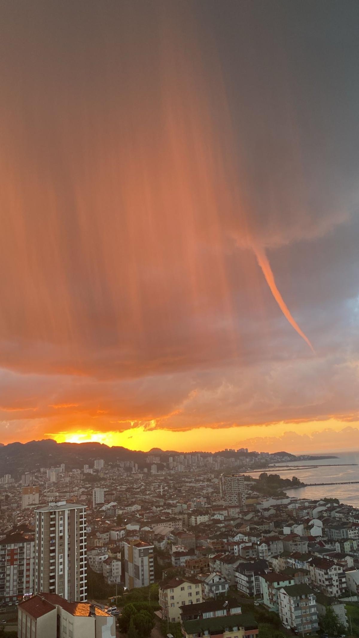 Ordu'nun Fatsa ve Perşembe ilçelerinde etkili olan, Altınordu ilçesinden de görülen hortum, insanları tedirgin etti. Hortum karaya ulaşmadan son bulurken, sahile giden çok sayıda vatandaş o anları cep telefonu kamerasıyla kaydetti.