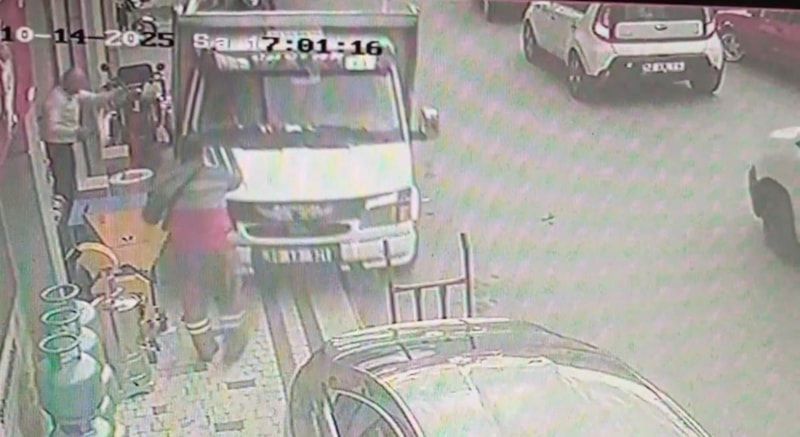 Görüntülerde, kamyonet sürücüsünün kaldırıma çıktığını gören çevredeki esnafın paniklediği görüldü.