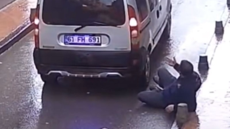 Sürücüsünün geri manevra yaptığı hafif ticari aracın çarptığı Fatih Zor yaralanırken, kaza anı görüntülendi.