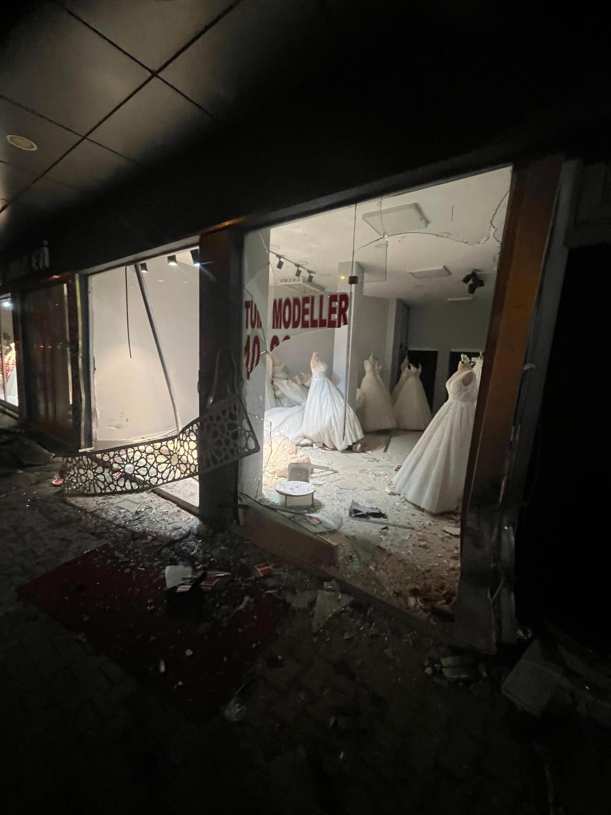 O sırada kontrolden çıkan otomobil, otoyolda sürüklenerek cadde üzerinde bulunan bir gelinlikçi dükkanına çarptı, ardından yola savruldu.