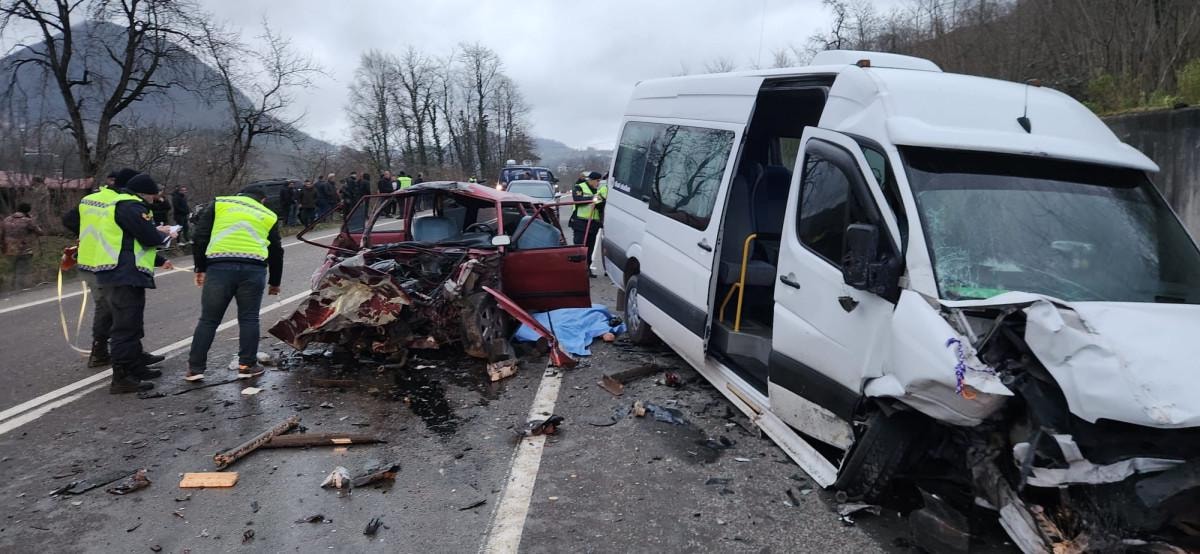 Ulubey ilçesinde saat 17.15 sularında, sürücüsünün 34 yaşındaki Murat Fedakartürk olduğu minibüs ve 51 yaşındaki Hayati Yılmaz kontrolündeki araç kafaya kafaya çarpıştı.