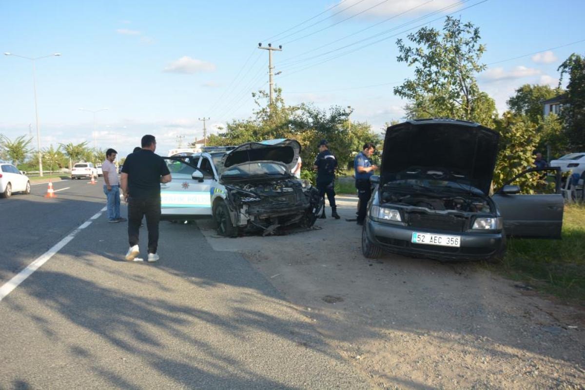 Kaza sonucu yaralanan polis memuru Y.İ. (50) ile otomobilde bulunan H.C.T. (13), sağlık ekiplerince Ünye Devlet Hastanesi'ne kaldırıldı.