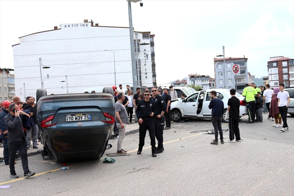 Ordu'nun Ünye ilçesi Liseler Mahallesi'nde Ayten Kuru yönetimindeki otomobil ile Emrullah Kaymak idaresindeki otomobil çarpıştı.