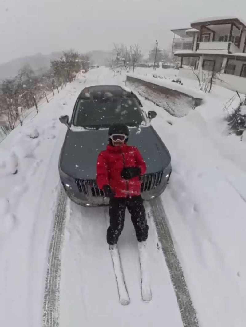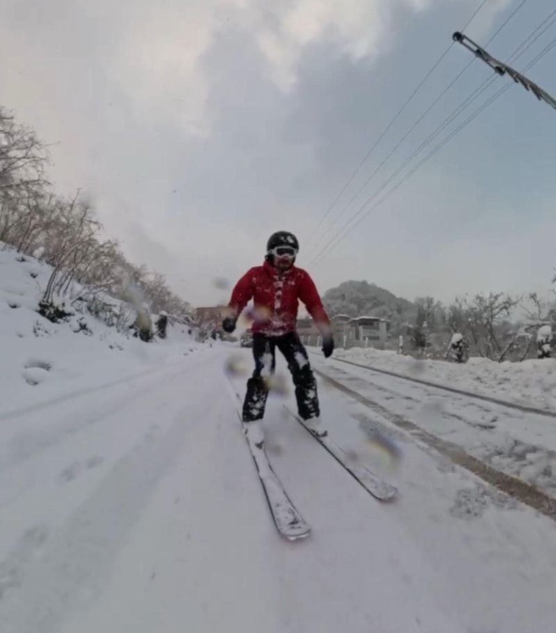 Ordu'nun Korgan ilçesinde beden eğitimi ve spor öğretmenliği yapan Osman S., kar yağışının ardından kayak takımını alarak dışarı çıktı.