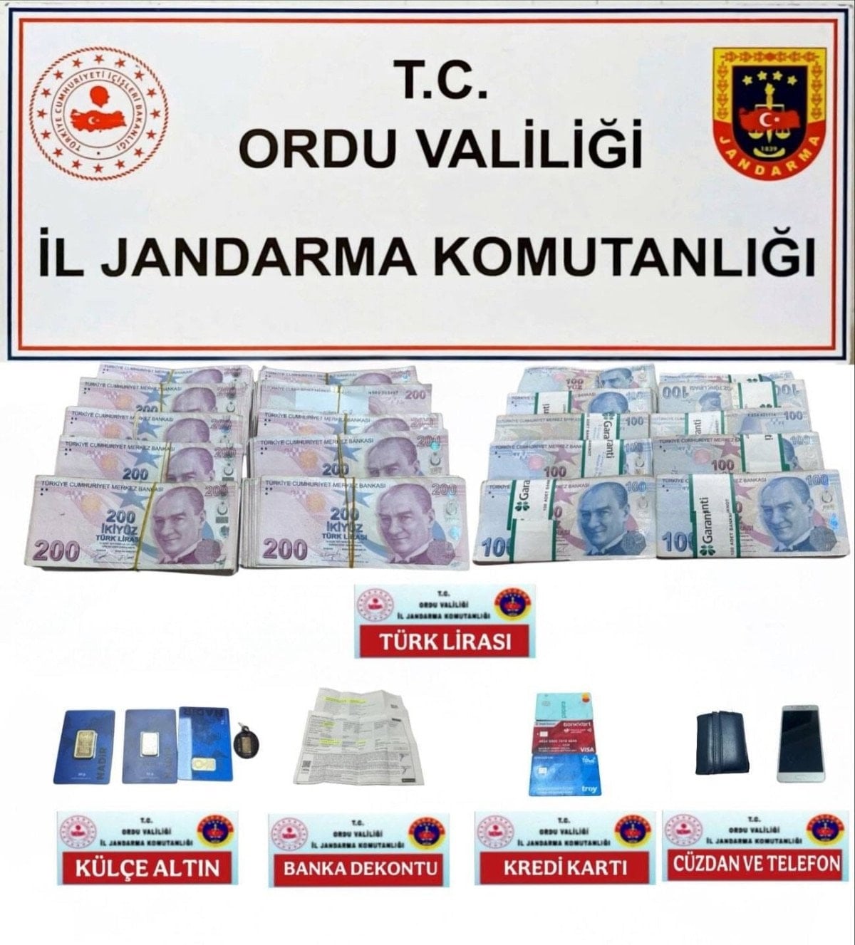 Altınordu ilçesinde suçüstü yakalanarak gözaltına alınan M.E.Ö. ve B.K.'nin yapılan üst aramasında, dolandırıcılık suçundan elde ettikleri 387 bin 70 lira, 36 gram külçe altın, 500 Özbek Somu ve suçta kullanılan 1 cep telefonu ile 3 banka kartı ele geçirildi, 2 şüpheli gözaltına alındı.