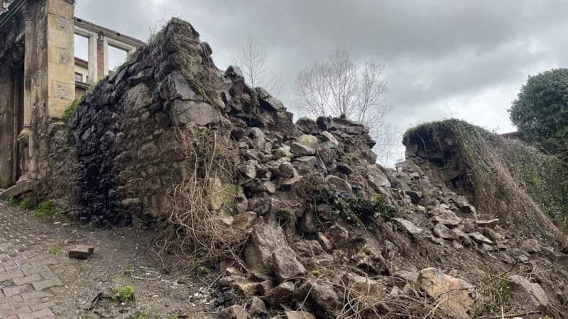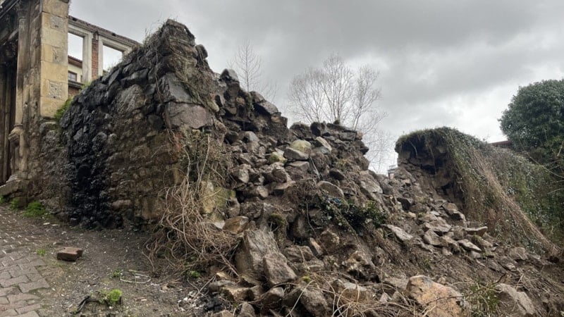 Ordu'nun Ünye ilçesi Kaledere Mahallesi Çiftehamam Sokak’ta, bölgede etkili olan yoğun yağış nedeniyle, sokak üzerinde bulunan tarihi ev kalıntısının çevresindeki istinat duvarı çöktü.