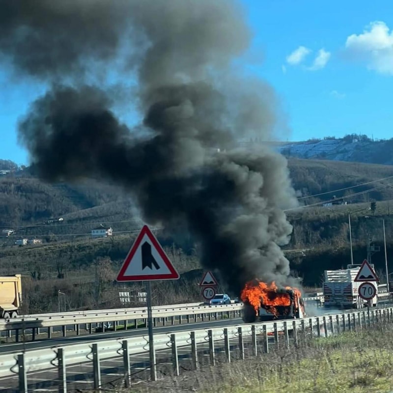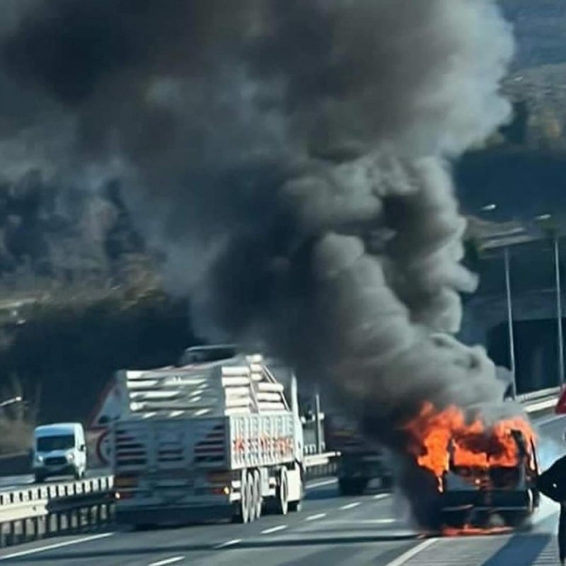 Durumu fark eden Çalış, aracını yolun sağına çekerek ailesi ile birlikte indi. Büyüyen alevler, kısa sürede aracı sardı.