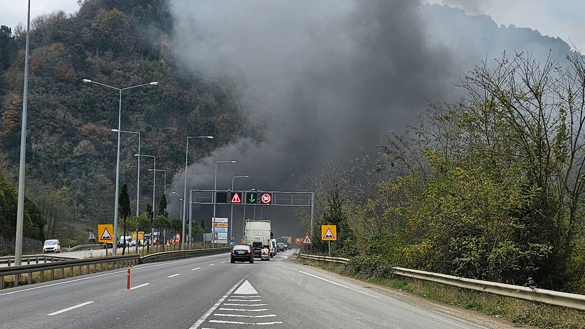Ekiplerin müdahalesiyle kontrol altına alınan yangın sırasında yoğun dumanlar gökyüzünü kaplarken, soğutma çalışmaları sonrası durdurulan araç trafiğinde çevre yolunda uzun kuyruklar oluştu.
