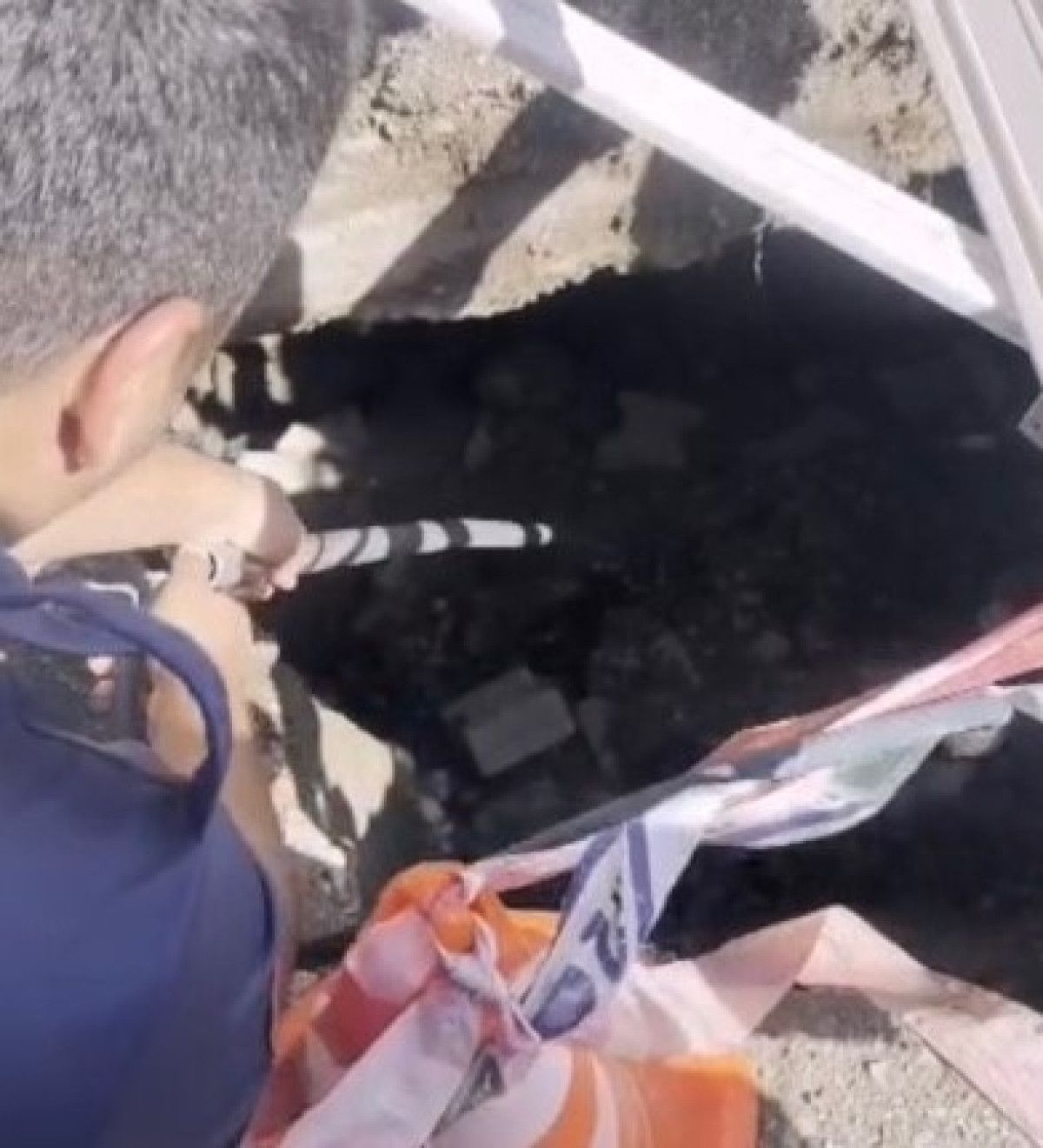 - Anne kedi kurtarma boyunca çukur başından ayrılmadı ve yavrusunu aradı.