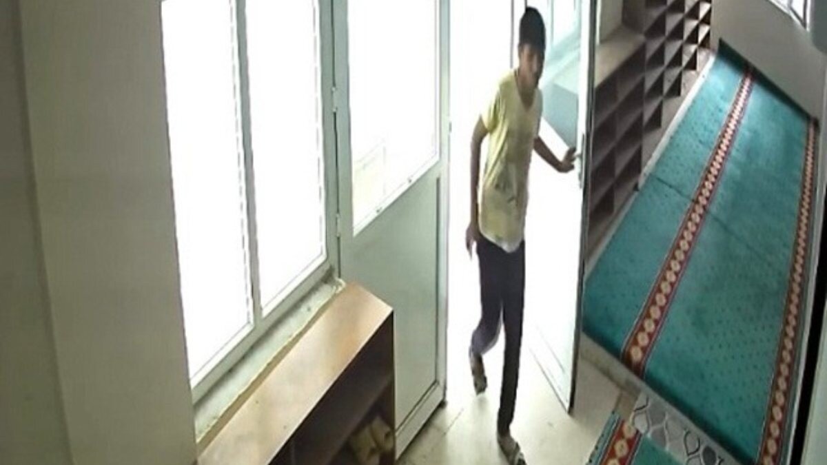 Görüntülerde camiye giren bir şahsın klima kablolarını çaldığı anlar görüldü.