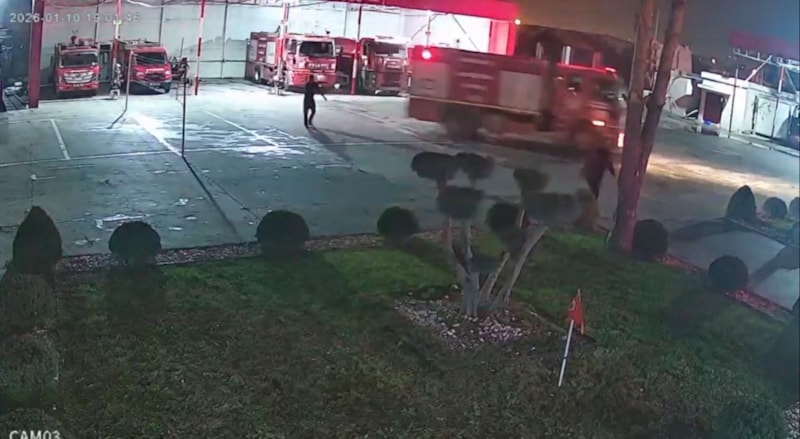 Kentte itfaiye ekipleri, mesai saatleri içinde izledikleri Galatasaray–Fenerbahçe Süper Kupa finali maçı sırasında gelen yangın ihbarı üzerine alarmın çalmasıyla kısa sürede araçlara binerek göreve çıkışı yaparken o anlar güvenlik kamerasına yansıdı.