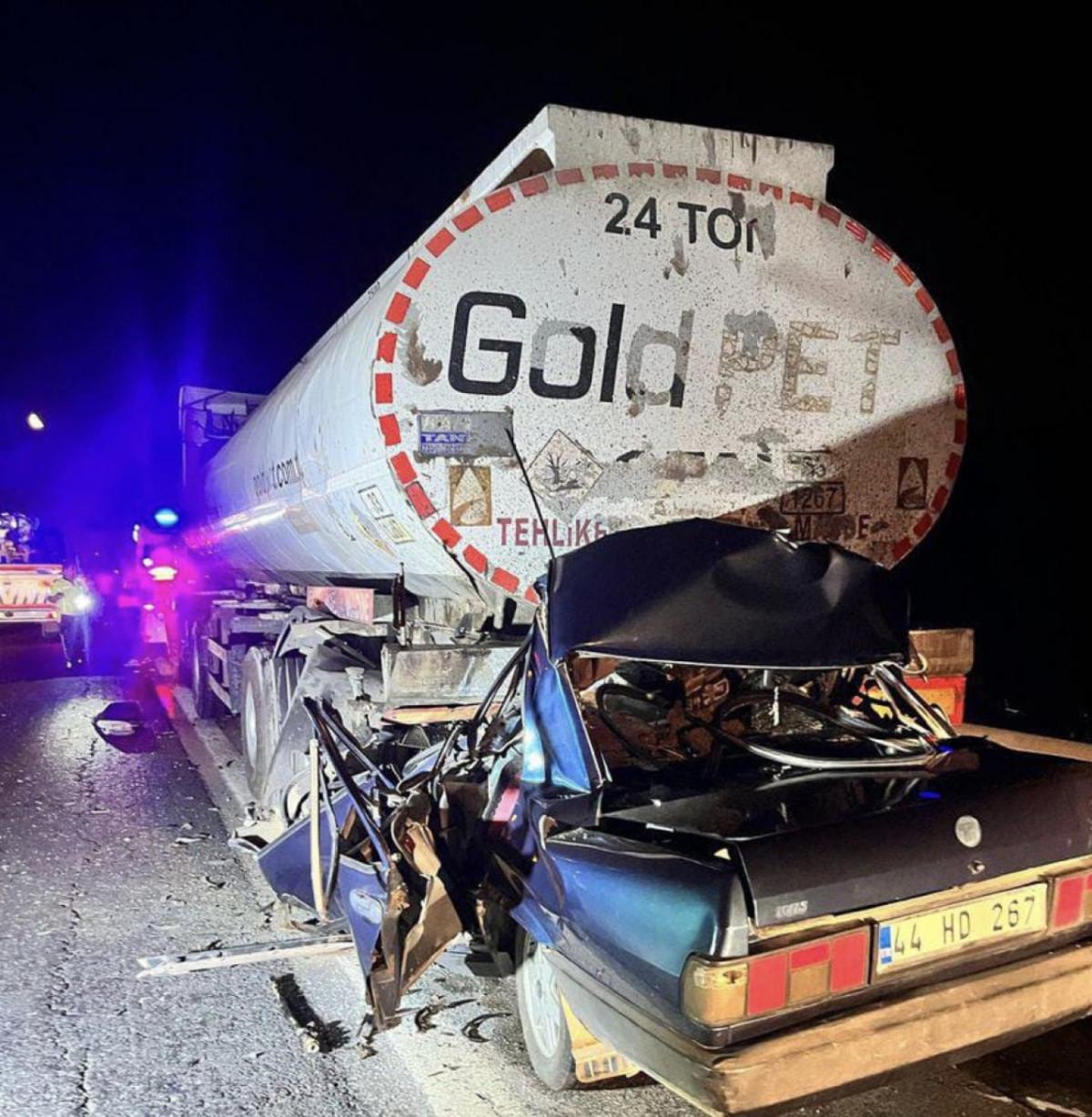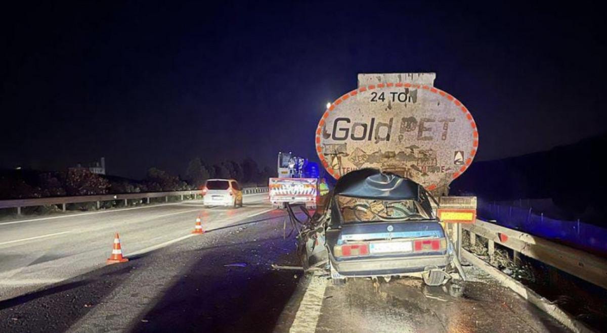 Aşırı hız yaptığı iddia edilen 19 yaşındaki Furkan Kılıç'ın kullandığı otomobil, arıza nedeniyle emniyet şeridinde duran akaryakıt tankerine arkadan çarptı.