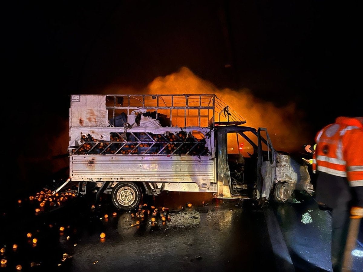 Osmaniye'nin Bahçe ilçesinde, mandalina yüklü kamyonette yangın....