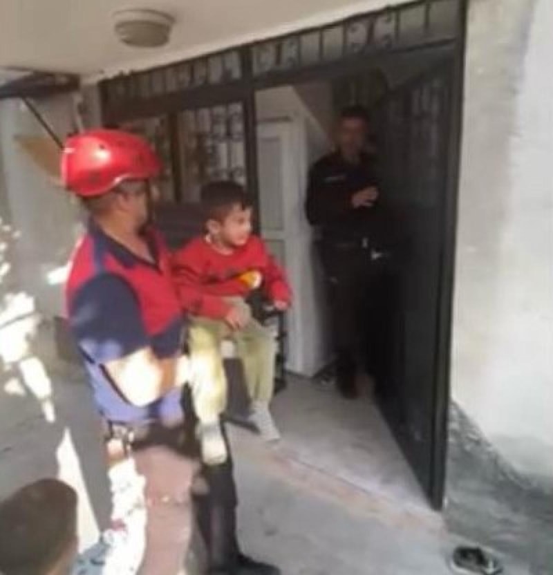 BALKONDAN GİREN İTFAİYE, KÜÇÜK ÇOCUĞU KURTARDI