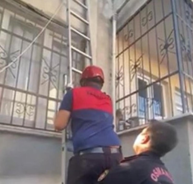 İhbar üzerine Osmaniye Belediyesi İtfaiye Müdürlüğü'ne bağlı kurtarma ekipleri hızla olay yerine intikal etti. İtfaiye ekipleri, kısa sürede belirtilen adrese ulaşarak, uzatma merdiveni yardımıyla binanın balkonuna tırmandı. Ekiplerden bir itfaiye eri, içeride mahsur kalan küçük çocuğu güvenli bir şekilde kucaklayarak dışarı çıkardı.