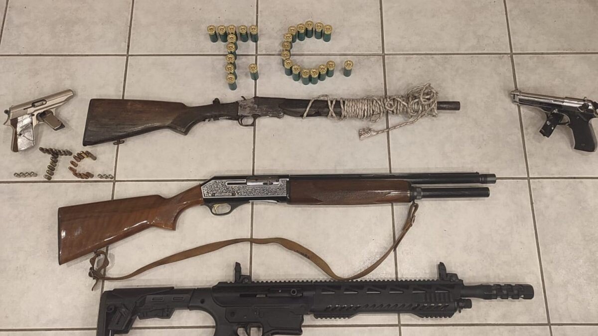 Otomobilde ve şüphelinin ev ve iş yerinde yapılan aramalarda 3 adet ruhsatsız tüfek, 2 kuru sıkı tabanca, 57 farklı kalibrelerde mermi ve fişek, 9.26 gram metamfetamin, 4.98 gram esrar ve 24 sentetik ecza nitelikli hap ele geçirildi.