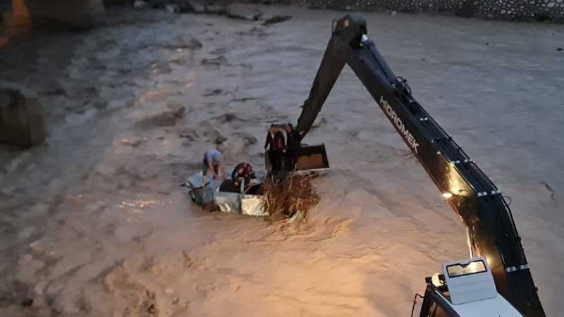 Araçların dere yatağından çıkarılması için iş makinelerinin desteğiyle çalışma başlatıldı.