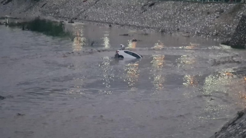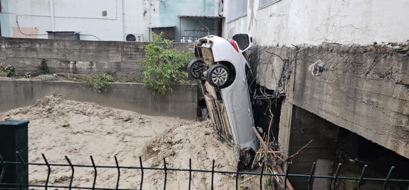 Osmaniye'de etkili olan sağanak nedeniyle meydana gelen selde park halindeki 7 araç dere yatağına sürüklendi.