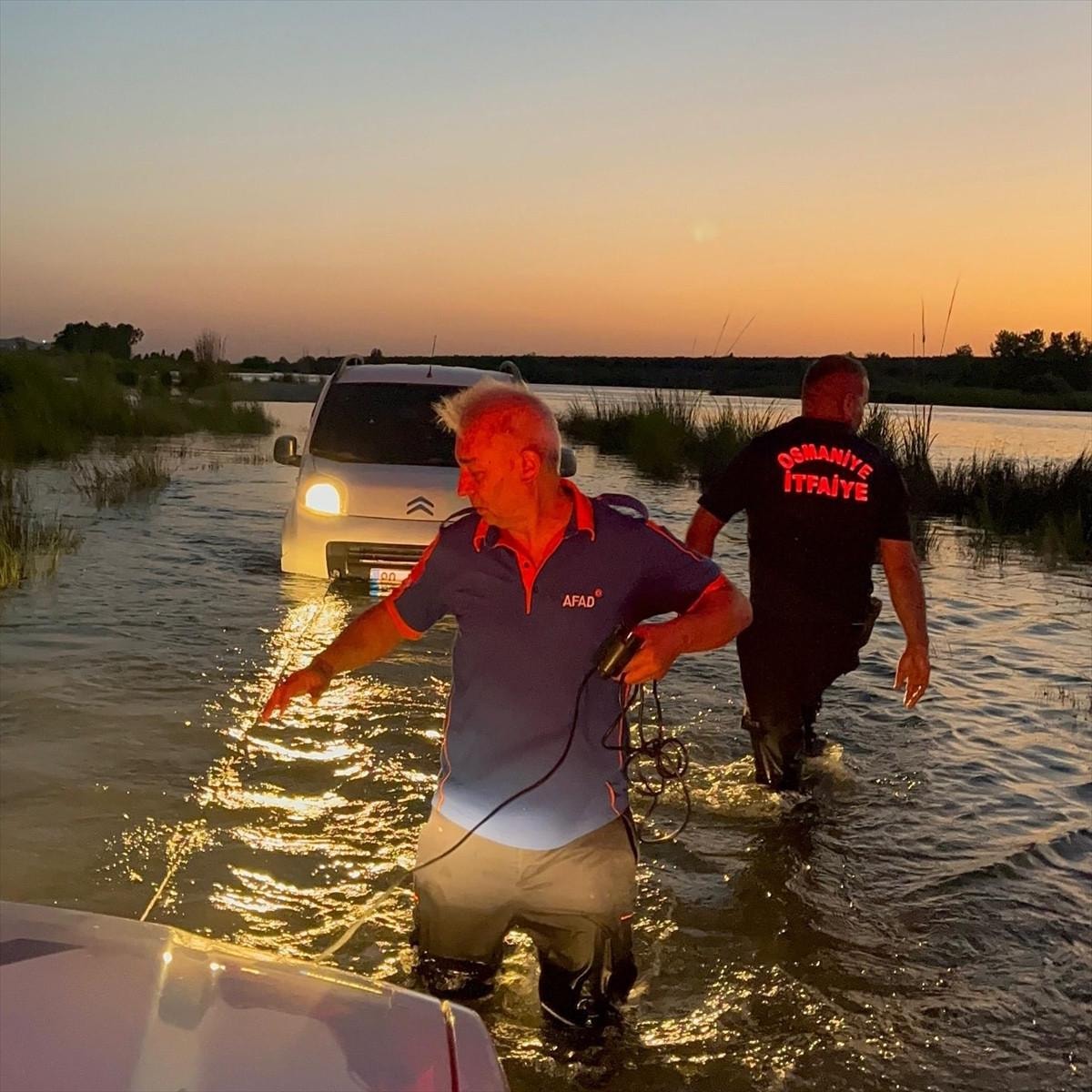 Osmaniye’nin Kumarlı köyü Karakışla Mahallesi’nde ırmak kenarına giden vatandaşlar, su seviyesinin aniden yükselmesiyle araçlarında mahsur kaldı.