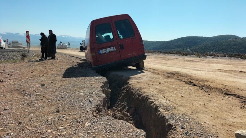 Osmaniye'de depremde yarılan karayolunun içine ticari araç düştü. Ölen ya da yaralananın olmaması teselli kaynağı oldu.