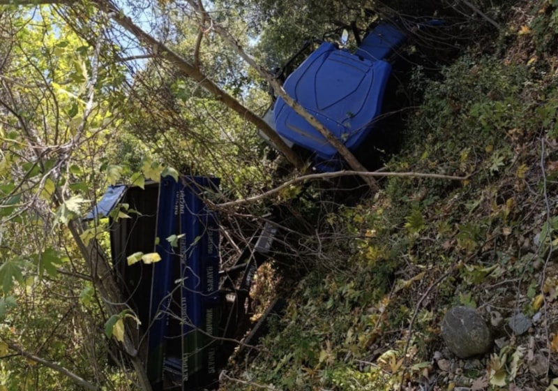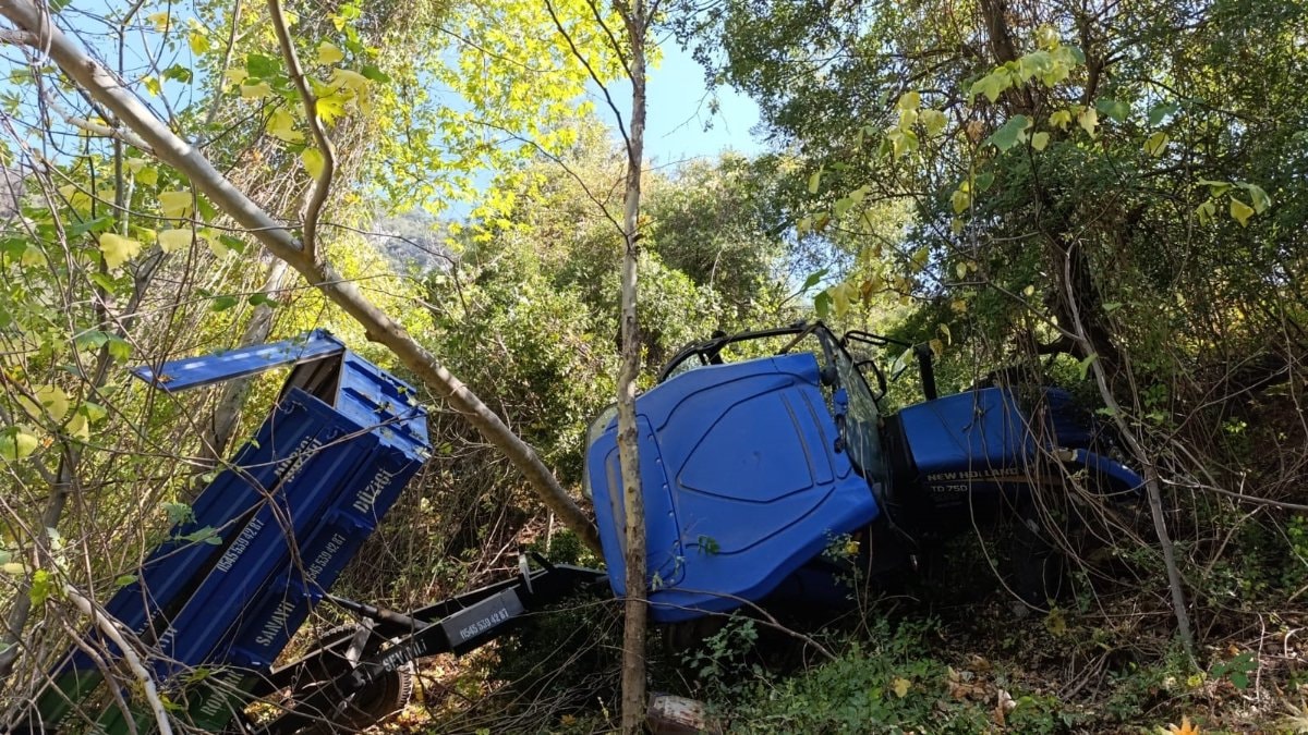Mehmet Ali K. idaresindeki traktör, sürücüsünün direksiyon hakimiyetini kaybetmesi sonucu yoldan çıkarak römorkuyla birlikte uçuruma yuvarlandı.