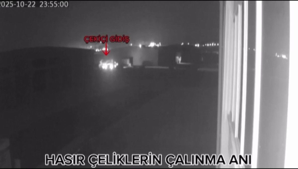 Hırsızlık anları ve çalınan demirlerin tırlara yüklenme anları, güvenlik kameralarına yansıdı.