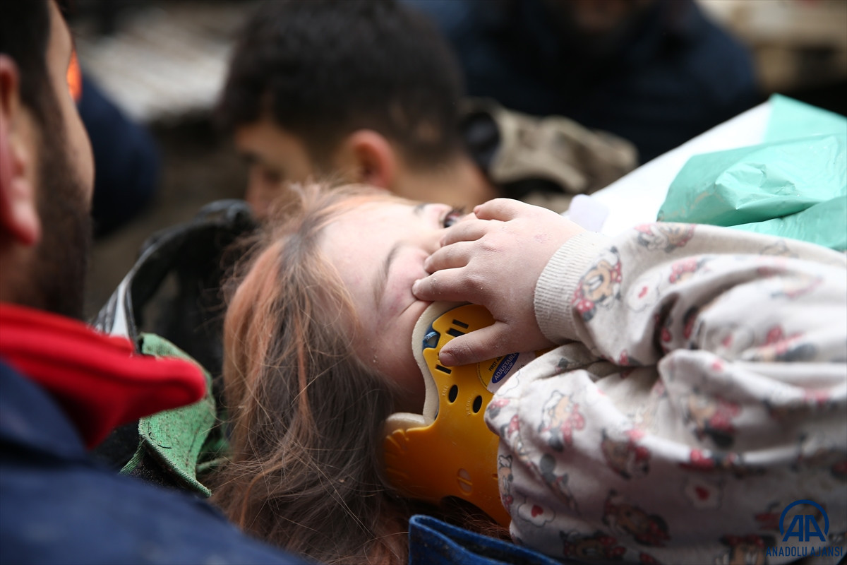 Ekipler, bir kız çocuğunu enkazın altından sağ olarak kurtardı. Yaralı olan çocuk, ekipler tarafından hastaneye sevk edildi