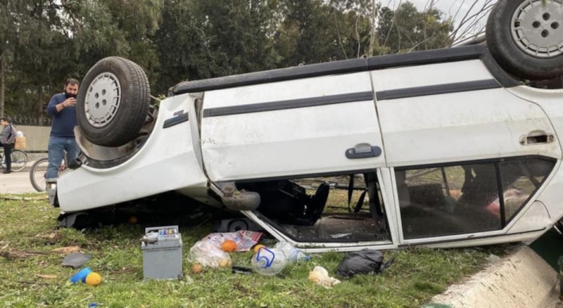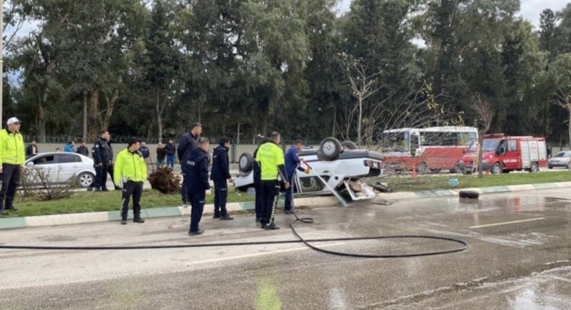 Ani manevrayla direksiyon hakimiyetini kaybeden sürücü refüjdeki ağaca çarparak takla attı.