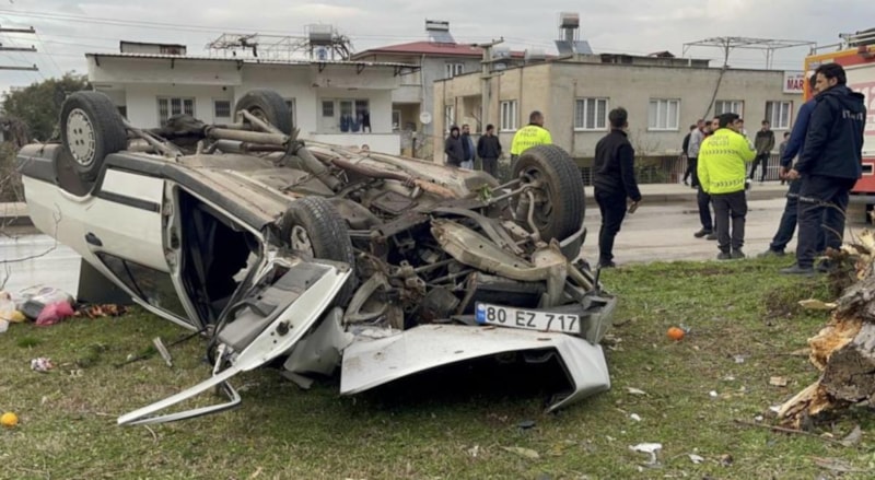 Osmaniye'de yaya çarpmamak için manevra yapan araç hurdaya döndü.