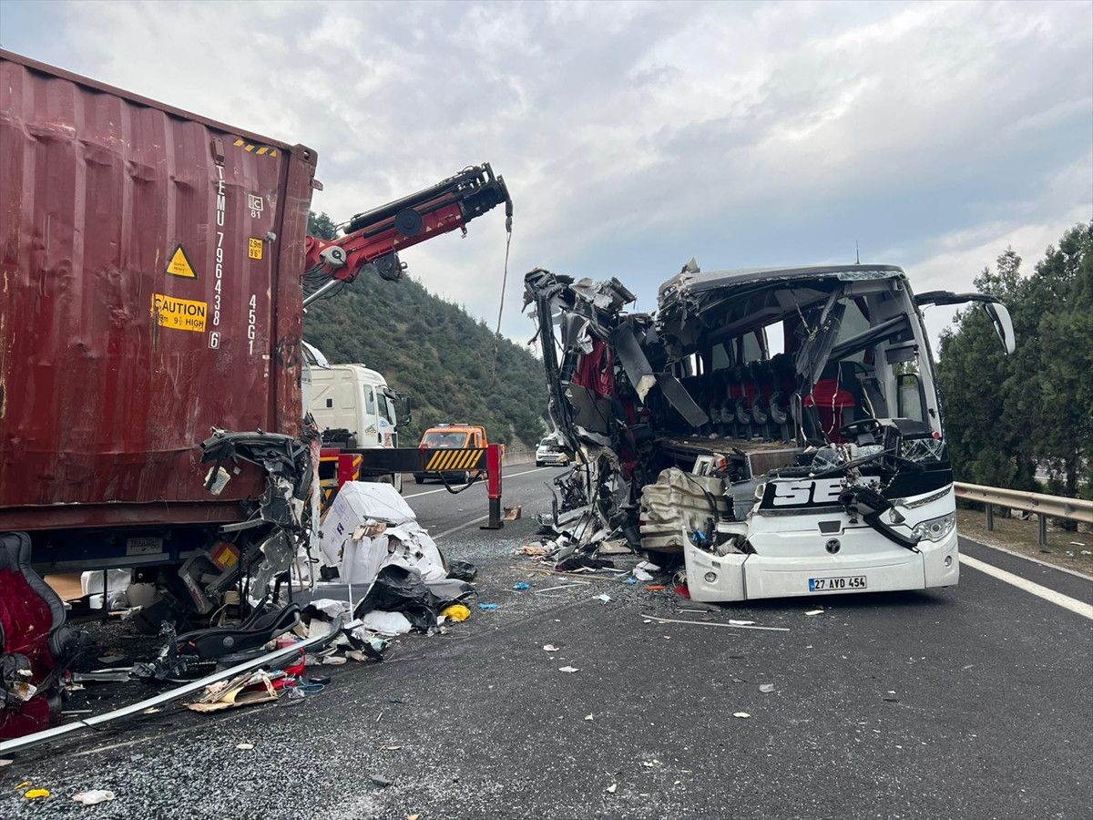 Otoyolun Gaziantep yönü kaza nedeniyle bir süre trafiğe kapatılırken, ulaşım kontrollü şekilde tek şeritten sağlandı.